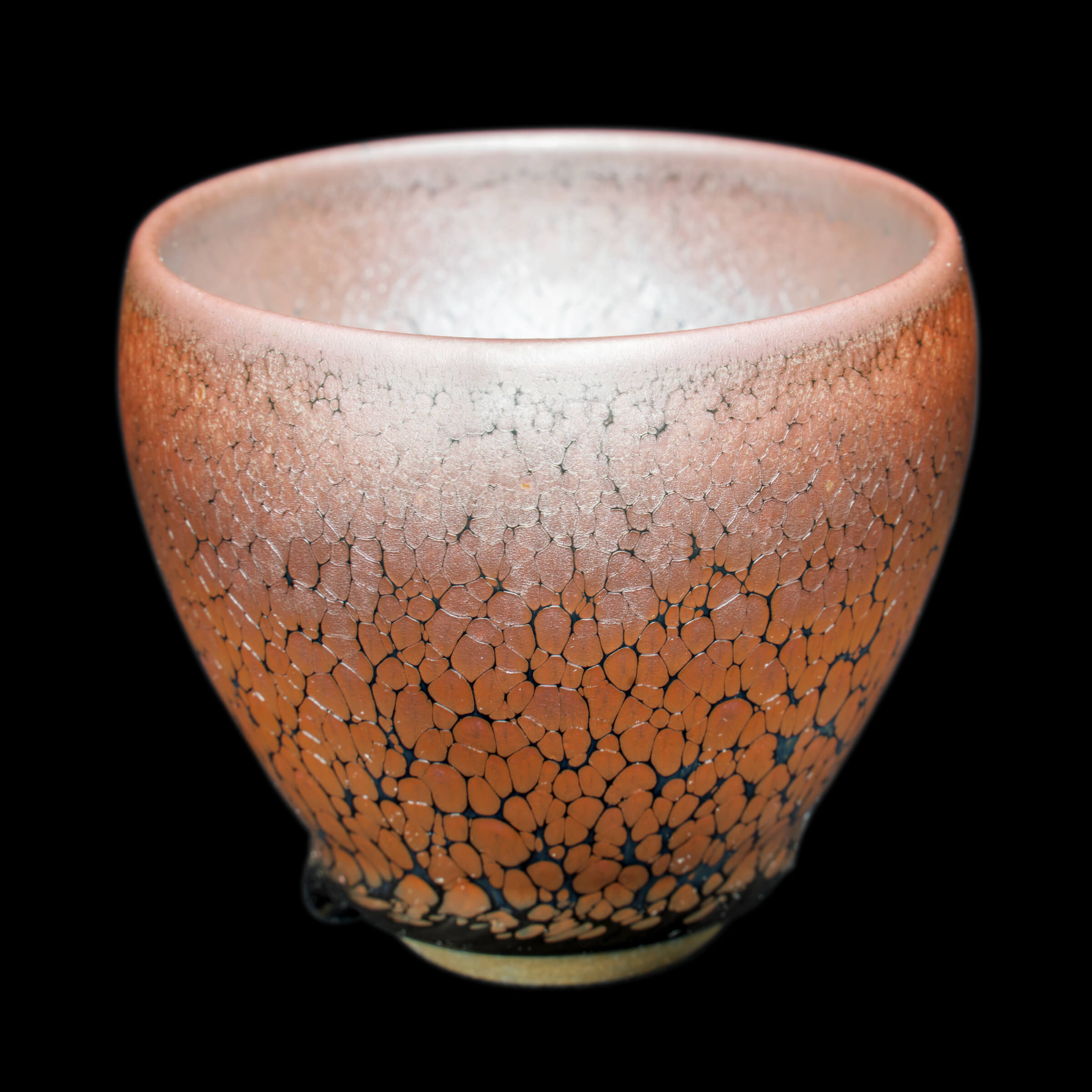 福建影照建盏陶瓷有限公司----是由林子照大师创办的,是近几年专业制作油滴建盏,在多种比赛中取得了优异的成绩。油滴盏的釉面密布着银灰色金属光泽的小圆点儿,形似油滴。“油滴”的形成其实是铁氧化物在釉面富集,冷却后析出晶体所致。呈赭(zhe)黄色晶斑的称“金油滴”,在黑色釉面上呈银晶斑者称“银油滴”。